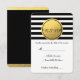 Carte RSVP ronde à rayures noires et blanches avec feuille d'or. Articles assortis dans ma boutique.