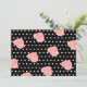 De jolies roses roses sur un motif à pois noir et blanc décorent cette carte RSVP. Personnalisez l'information en fonction de vos besoins. Utilisez cette carte RSVP pour un mariage, une réception de mariage, une fête, etc...Le design est de l'art original.