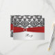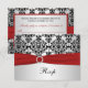 CARTE RSVP RUBAN IMPRIMÉE DAMASSÉE rouge, gris et