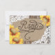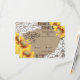 Fleurs de soleil, planches de bois vieilli, et dentelle sur lin-look arrière - plan rustique pays rustique conception de carte RSVP de mariage occidental.