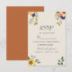 Elégant, moderne, botanique, rustique mariage floral RSVP avec fleurs d'aquarelle, tournesols, verdure et terre cuite fond orange brûlé.