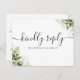 Une élégante carte RSVP signature feuille en noir et blanc avec une typographie chic. L'inverse vous donne vos détails et une demande amusante de chant invité. Conçu par Thisisnotme©