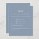 Budget moderne et simple Dusty Blue carte RSVP. La couleur et le type de police peuvent être modifiés via le menu d'édition. Vous pouvez également modifier les couleurs du texte et de l'arrière - plan de chaque côté si vous le souhaitez. Un rapport qualité/prix inférieur 4,5 x 5,6 pouces alternative par défaut à l'option semi-brillant qui est recommandé pour les invitations et est une épaisseur similaire à une carte postale. L'option satin est beaucoup plus mince.