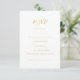 Cette simple et élégante carte RSVP demande chant or est parfaite pour votre mariage moderne minimaliste blanc et or. Le design comporte une police d'or contemporaine minimale accompagnée d'une calligraphie formelle. Gardez-le tel quel, ou choisissez de le personnaliser avec vos propres oeuvres d'art ou photos !
