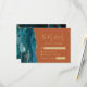 Le bord gauche de cette élégante carte d'enceinte RSVP de mariage moderne est doté d'une bordure d'aquarelle turquoise ornée d'une parties scintillant en faux or. Le titre "Kindly Reply" apparaît dans un script d'écriture manuscrite de couleur or, avec le texte personnalisable ci-dessous en police de cuivre sur un arrière - plan orange brûlé. L'envers présente un design d'agate turquoise et or assorti.