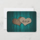 Carte RSVP de mariage turquoise rustique avec un bocal de mason et des coeurs de burlap contre un arrière - plan de bois rustique. Personnalisez facilement cette jolie carte RSVP rustique turquoise en ligne. Objets correspondants disponibles pour compléter cette carte RSVP de mariage turquoise romantique rustique.