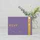 Carte RSVP violette. Ajoutez une touche de modernité à votre journée spéciale grâce à cette invitation audacieuse et intemporelle qui présente une typographie de feuille d'or et un monogramme mariage personnalisé sur un arrière - plan violet. Ce faire-part de mariage fera en sorte que vos invités seront impressionnés par votre grand jour avant même que vous n'ayez dit : "Je le fais".