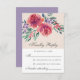 Elégant design de carte RSVP mariage avec deux roses de pivoine aquarelle entourés de fleurs et de feuillage plus petits. Le côté inverse de la carte d'invitation est en lavande violet magnifique. Un choix idéal pour les mariages du printemps/été ou les mariages de style rustique/champêtre.