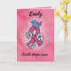Exprimez vos vœux sincères à une survivante courageuse et forte du cancer du sein avec un message d'espoir "foi, espérance, amour" sur une carte ruban rose. L'image douce de l'oiseau et des fleurs enverra vos pensées attentionnées et vos prières.