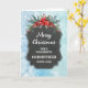 Joyeux Noël pour la carte marraine avec motif en damier rustique et feuillage d'hiver avec poinsettias.