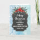 Joyeux Noël pour l'arrière-petite-fille carte avec motif de tableau rustique et feuillage d'hiver avec poinsettias.