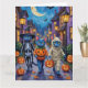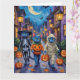 Adorable Russian Blue cats dressed in playful Halloween costumes carry pumpkin buckets while trick-or-treating under the moonlit sky. This festive design highlights the breed’s elegant blue-gray coat, vivid green eyes, and gentle personality, perfectly capturing the spooky yet fun atmosphere of Halloween night. A charming celebration for Russian Blue lovers, cat enthusiasts, and Halloween fans alike.