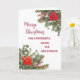 Joyeux Noël pour la cousine et la carte de son mari dans des poinsettias aquarelles rustiques et le feuillage.