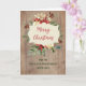 Joyeux Noël pour la nièce et sa carte de mari avec arrangement floral aquarelle et motif en bois rustique et verset réfléchi.
