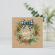 Cette carte de vacances magnifiquement conçue présente d'élégantes aquarelles d'une couronne ornée d'un bison blanc et noir à damiers arc, de pinecones, de feuilles saints, de baies rouges et d'aiguilles de pin. Son design élégant mais rustique saisit l'essence de la période des fêtes de décembre et séduit ceux qui apprécient les illustrations artistiques. La carte offre des options de personnalisation, vous permettant de la personnaliser avec votre nom d'entreprise, nom de famille ou nom individuel, et d'inclure un poème de salutation saisonnier sur mesure au dos, ce qui en fait un choix judicieux pour diffuser la joie des vacances.