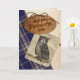 Carte de voeux belle de fête des pères faite dans un regard rustique en bois de pin, avec des couches graphiques de bleu et de plaid de tartan bronzage, une peinture vintage de hibou et la fête des pères heureuse de lecture de plaque en bois ovale. Personnalisez la salutation à l'intérieur de la carte pour adapter à vos besoins.