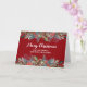 Joyeux Noël pour petit-fils et sa carte de famille avec rustique aquarelle de campagne verdure et arrière - plan rouge.