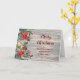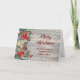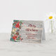 Joyeux Noël pour petit-fils et sa carte de famille avec une aquarelle rustique verdure et des poinsettias avec motif en bois vintage.