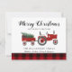Rustic Joyeux Noël Agritourisme Nom de famille Carte de vacances - Souhaitez à votre famille et à vos amis un Joyeux Noël cette saison de vacances avec une touche de rustique, style ferme. Notre carte de Noël de pays unique comprend un tracteur vintage de ferme portant un arbre de Noël frais de la ferme et un cadeau emballé pour les vacances. (Tout le texte est modifiable). Joyeux Noël est dans une jolie police de caractères. La carte est personnalisée avec votre nom de famille et le nom du membre de votre famille. La carte fait partie d'une collection. Conçu par Beverly Bainbridge Magnolia & Thistle