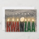 Les lettres de KWANZAA sont des bougies éclairées sur un arrière - plan ondulé à grains de bois.