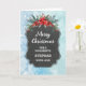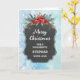 Joyeux Noël pour la carte stepdad avec motif en damier rustique et feuillage d'hiver avec poinsettias.