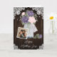 Créez une belle carte de la fête des Mères avec des roses roses et violets à l'intérieur d'un bocal de maçon sur un arrière - plan rustique en bois. Le tag personnalisé 'Best Mom Ever' a été ajouté au bouquet. Dentelle florale blanche et lumières scintillantes ajoutent un charme rustique à ce design floral doux.