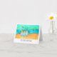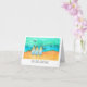 3 rennes au nez rouge s'abritent derrière leurs planches de surf dans cette scène de Noël côtière mignonne. Les messages à l'avant et à l'intérieur sont facilement personnalisables.