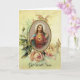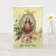 Belle image vintage du Sacré Coeur de Jésus avec des roses jaunes derrière l'image ovale. Tout le texte et les polices peuvent être modifiés.