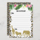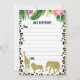 Safari Gold Cheetah Print Time Capsule Card Safari thème de la capsule de temps avec trois animaux de parties scintillant d'or fuax, un arrangement floral tropical et motif d'impression de guépard.