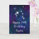 Cette carte d'anniversaire cosmique et céleste peut être personnalisée avec un nom ou un titre comme maman, fille, petite-fille, nièce, ami etc. Le design présente la constellation zodiaque Sagittarius sur un arrière - plan de galaxie bleu foncé et violet à étoiles dispersées. Le texte combine écriture manuscrite et polices serif modernes pour un look élégant et classique. C'est parfait pour tous ceux qui s'intéressent aux signes et à l'astrologie des étoiles.