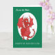 Carte de voeux pour la Saint David's Day, "Across the Miles", avec un dragon rouge mignon d'une aquarelle par Judy Adamson.