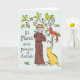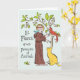 Image rustique et colorée de Saint François d'Assise, protecteur des animaux et de l'environnement, protégeant un chat affectueux. Envoyez sa bénédiction à tout chat qui a besoin de protection, ainsi qu'en signe de sympathie pour un chat décédé.