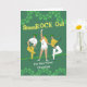 Personnalisez cette carte de voeux de la Saint Patrick pour une nièce qui est une interprète et une vedette de votre clan. Une bande de St. Patrick's Day figure sur la couverture de la carte entourée de décorations shamrocks. Copyright © Shoaff Ballanger Studios, 2022.