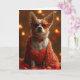 Faites de la Saint-Valentin un jour spécial avec ce design cocooning de Basenji ! L'illustration présente le chien sur une couverture rouge douce avec un oreiller en forme de cœur, entouré de bougies et de pétales de rose. Une carte sincère pour les amateurs de Basenji.