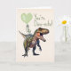 Thème de Saint-Valentin "Dino-mite" avec une illustration d'un dinosaure et un ballon en forme de cœur vert. Personnalisez le texte à l'intérieur.