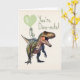 Thème de valentin "Dino-mite" avec illustration d'un dinosaure et d'un ballon en forme de cœur vert. Personnalisez le texte à l'intérieur.