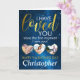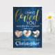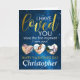 Un fabuleux collage photo personnalisé carte de la Saint Valentin. Ce design à thème d'espace bleu est une façon magnifique d'envoyer un message de Saint-Valentin senti pour le coeur. Remplissez les 3 coeurs avec des photos. Un design design personnalisé, bleu et or, qu'ils ne manqueront pas d'apprécier.