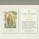 Avec une belle image catholique traditionnelle de l'image des fiançailles de Marie et Joseph avec une bordure dorée décorative accentuée de fleurs de différentes couleurs et un fond de dentelle blanche. Une prière est au dos pour les mariés. Tout le texte et les polices peuvent être modifiés.