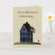 Souhaitez à quelqu'un un anniversaire spécial avec cette maison de saltbox d'art populaire avec le drapeau et les moutons. C'est bon pour un type ou une fille.