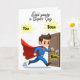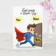 Ton papa est-il ton super-héros ? Imagine un super-héros portant un costume bleu et une cape rouge—parfait pour une carte de fête des Pères ou d'anniversaire. Ajoutez des explosions d'étoiles et des mots humoristiques de style BD pour personnaliser comme vous le souhaitez.