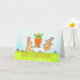 Obtenez cette jolie carte lapin pour souhaiter à quelqu'un un joyeux anniversaire. Au centre de cette carte deux lapins se sont réunis, celui de gauche sourit et tient un plat de service à celui de droite. C'est un gâteau d'anniversaire. Une énorme carotte orange en sort. Il a une seule bougie rouge qui sort du milieu de ses feuilles. Le second lapin est tellement ravi par la vue, il saute dans les airs, répand ses petits bras et rit. Il porte un casquette de fête coloré. Les lapins se tiennent devant un arrière - plan bleu clair, sur une herbe verte claire, sur laquelle les mots "Joyeux anniversaire" sont écrits à la main en lettres jaunes.