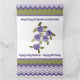 Personnalisez le message d'anniversaire heureux à l'intérieur et à l'extérieur sur cette grande carte de voeux pliée pour convenir à toute occasion spéciale, l'arrière - plan vert olive peut être changé à n'importe quelle couleur, et tous les éléments sont amovibles. Les couleurs sont violettes, blanches et vert olive foncé.