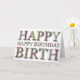 Joyeux anniversaire original et élégant avec des lettres dans l'ombre de soulagement et de baisse (non personnalisable) + Jour (à l'intérieur). Vous pouvez facilement ajouter le texte en cliquant sur le bouton de personnaliser.
