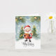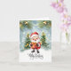 Un Père Noël charmant et joyeux tenant une boîte cadeau ornée d'un arc doré, au milieu d'une forêt enneigée. L'arrière - plan est orné d'arbres de Noël magnifiquement éclairés et de branches de pins surplombant des ornements brillants en forme d'étoile. L'expression "Joyeux Noël" est élégamment manuscrite en bas, ajoutant une touche festive et chaleureuse. A l'intérieur comprend un message personnalisable : "Que vos vacances soient remplies de chaleur, de joie et de rire. Je vous souhaite un Joyeux Noël et un Nouvel An plein de bénédictions !"
