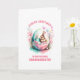 Célébrez les fêtes de Pâques en envoyant votre petite-fille préférée [ou en customisant] notre carte de voeux de Pâques! Une jolie peinture aquarelle d'un lapin brun lapin assis à côté d'un oeuf turquoise, à l'intérieur d'un oeuf de Pâques semblable à un globe terrestre. A côté de l'oeuf de Pâques, on trouve des fleurs roses et des oeufs de Pâques.