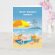 Chaque jour d'été est une fête pour les enfants sur la plage. La fille bronze et apprécie son rafraîchissement. La plage est l'endroit où aller et s'amuser avec des amis, peut-être fêter leur anniversaire aussi! N'oubliez pas la serviette, la casquette et le pare-soleil ! Envoyez-le pour surprendre un enfant d'anniversaire pendant un séjour d'été ! Cette carte de voeux est facilement personnalisable avec vos propres détails. Écrivez vos mots, choisissez une police, une taille ou une police de couleur et c'est prêt !