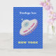 Salutations de soucoupe volante sur un arrière - plan bleu étoilé. La ville et le message peuvent être personnalisés. Achetez cette carte de prochaine génération et envoyez des salutations à vos charmants et amis.