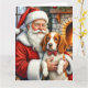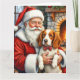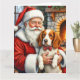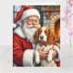 Carte Santa Claus Holding Brittany Spaniel Christmas Art