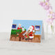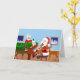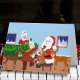 Santa Claus is teaching his favorite reindeer as his other reindeers and Mrs. Claus sing along for this Christmas card.
