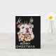 Carte Santa Reindeer English Bulldog Dog Christmas Light